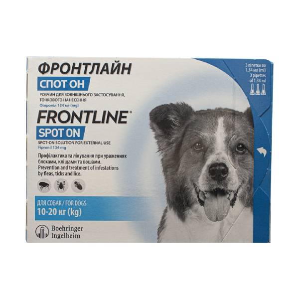 Инструкция по применению Фронтлайн Спот Он капли на холку для собак 10-20 кг №3*1,34 Boehringer Ingelheim