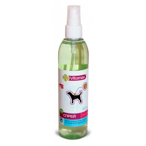 Эко спрей Vitomax представляет собой жидкость нежно-зеленого цвета, с приятным ароматом. Предназначен он для отпугивания блох, клещей и вшей у собак. Также спрей оказывает гигиеническое и успокаивающее действие – снимает раздражение, устраняет зуд.