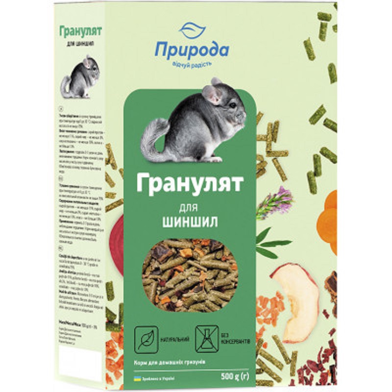 Полноценный витаминизированный корм, изготовленный с учетом потребностей и предпочтений шиншилл.