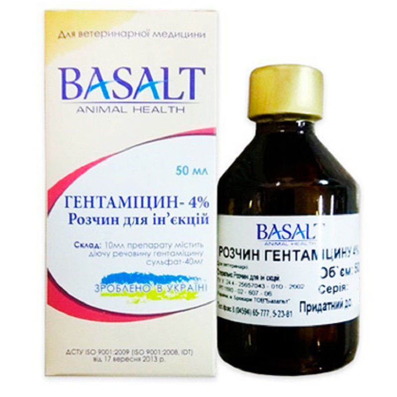Гентамицин относится к группе аминогликозидов. Обладает бактерицидным действием – в больших концентрациях снижает барьерные функции клеточных мембран и вызывает гибель микроорганизмов. Гентамицин активен в отношении грамположительных и грамотрицательных микроорганизмов: Escherichia coli, Salmonella spp., Shigella spp., Enterobacter aerogenes, Klebsiella spp., Некоторых видов Proteus spp. и Serratia spp., Pseudomonas aeruginosa, Pasteurella multocida, Staрhylococcus aureus, Serpulina hyodysenteriae, Mycoplasma spp.