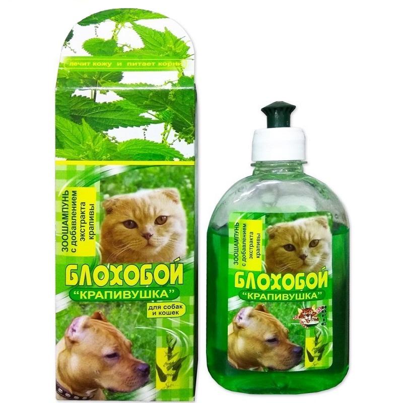 БЛОХОБОЙ “Крапивушка” 300 мл – инсектицидный шампунь против блох, клещей у собак и кошек. Снимает раздражение кожи, вызванное присутствием эктопаразитов. Благодаря экстракту крапивы, входящему в состав шампуня, устраняет зуд, улучшает регенерацию тканей.